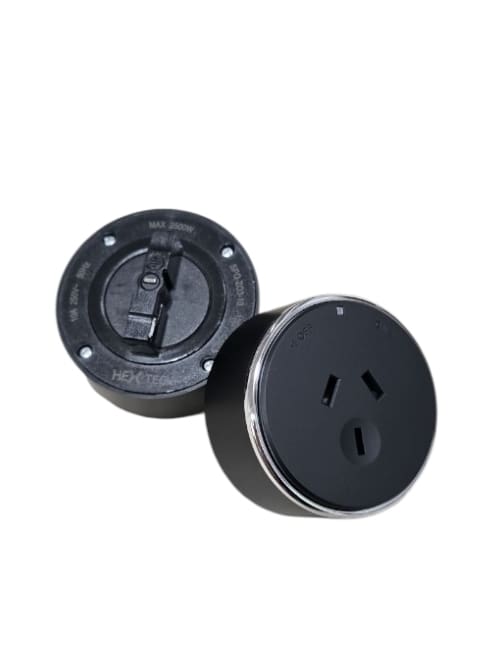 The Hex-Tech Power Outlet is designed to seamlessly integrate with our custom Power Track range. Sold individually—perfect if you need extra outlets for your setup.